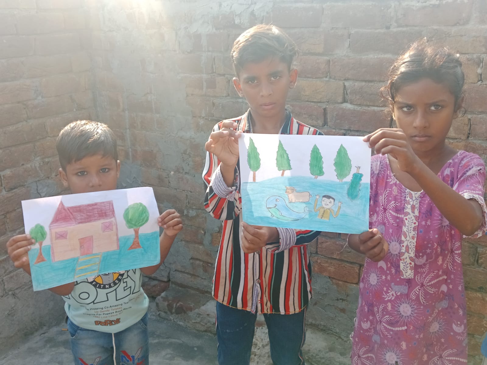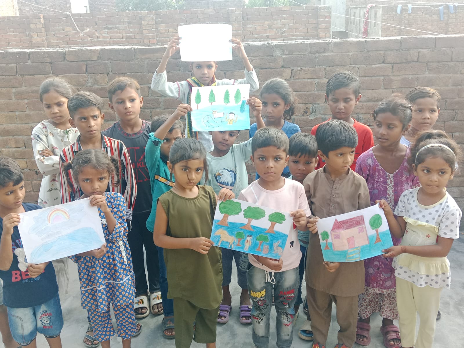 During the sessions, our volunteers used simple methods to tell children about floods. They explained the causes and dangers of floods, as well as important safety measures such as moving to higher ground, using clean water, and helping younger siblings in emergencies. The children also participated in interactive activities, including drawing pictures of floods, sharing short stories, and group discussions about helping others in difficult times. These activities not only increased their knowledge but also gave them a way to express their feelings and ideas about the disaster.